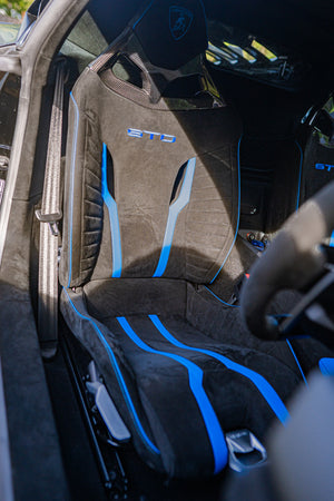 - STO bucket seats with Blu Cepheus four-point harnesses